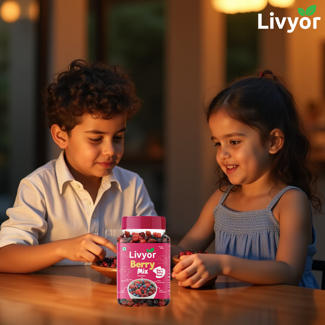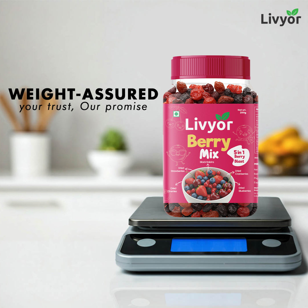 Our berry mix dry fruit blend includes handpicked strawberries, blueberries, cranberries, and black currants—perfectly dried to preserve flavor, nutrition, and natural sweetness for your daily healthy snacking. Enjoy the delicious taste and powerful antioxidants of our berry mix dry fruit, ideal for boosting immunity, improving digestion, and supporting heart health in a flavorful, easy-to-carry snack format. Packed with vitamins, fiber, and energy, our berries mix dry fruit makes a great addition to breakfast cereals, smoothies, yogurt bowls, or can be enjoyed straight from the pack. Carefully sourced and gently dried, our mix berries contains no added sugar or preservatives—just the pure, natural essence of berries for guilt-free snacking any time of day. Whether you're at work, traveling, or hitting the gym, our mix berry dry fruit is a convenient and nutritious companion that satisfies your sweet cravings without compromising on health.